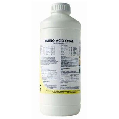Amino Acid Oral is a liquid preparation of a well-balanced combination of essential amino acids for administration via drinking water to calves, cattle, goats, poultry, sheep and pigs. The incorporated amino acids are easily digestible. Amino acids are essential for the synthesis of proteins that are needed for growth of organs and muscles and production of milk and eggs.