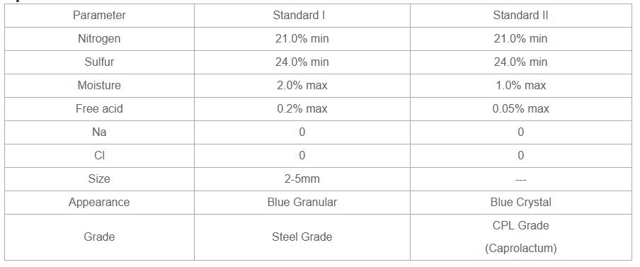 This ammonium sulphate granular appears in blue granular form and is packaged in 25kg bags, is a good nitrogen fertilizer which contains effective N 21% and sulfur 24%, it can be described as NPK 21-0-0 24S, is readily soluble in water, fast fertilizer. It can be applied to general soil and crop, can make vigorous branches and leaves, improve fruit quality and yield, enhance crops on disaster resistance ability, as a basic fertilizer, additional fertilizer and seed manure.