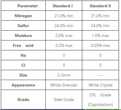 Ammonium sulphate Granular & Crystal is a good nitrogen fertilizer which contains effective N 21% and S 24%, is readily soluble in water, fast fertilizer. It can be applied to general soil and crop, can make vigorous branches and leaves, improve fruit quality and yield, enhance crops on disaster resistance ability, as a basic fertilizer, additional fertilizer and seed manure.