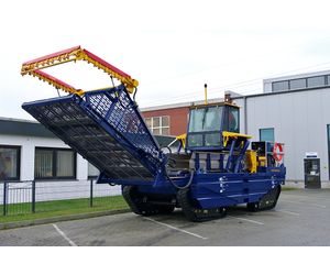 As an amphibious aquatic weed harvester with its additional chain drive, it is able to move independently from the low-loader to the body of water. The amphibious boat can be used to cut and collect aquatic plants, rubbish, wood and other debris in shallow waters or swampy areas and is also used in areas that cannot be reached by floating equipment.