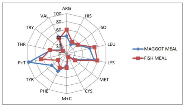 The amino acid profile of the larvae shows strong similarities with fishmeal. If you had always wanted to add fishmeal to the feed, but this was too expensive or would like to replace fishmeal because it is not sustainable, then the Amusca mix is a perfect alternative.