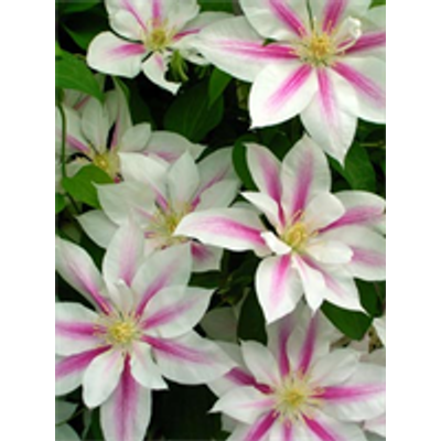 Brushed with a bright pink stripe. Such a cheery face to greet you. Flowers on new growth in late summer. Suited to growing in containers.