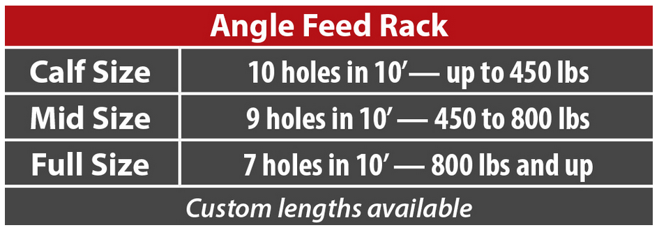 Galvanized Angle Feed Rack is a cost effective alternative for pens where deadlocks are not needed. Helps train animals before transitioning to headlocks. Keeps animals positioned at bunk. Offers the most flexibility for pens with various size animals.