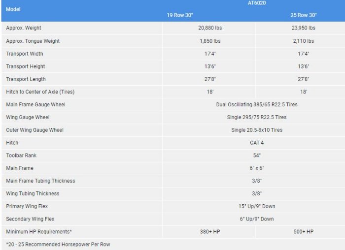 An anhydrous ammonia applicator built for high-rate, high-acreage use! The AT6020 commercial class fertilizer applicator features a heavy-duty frame and toolbar design that will ensure you get the job done during the narrow application window. The AT6020 fertilizer applicator features toolbar widths from 62.5` to 42` with 20" or 30" row spacing, depending on model.