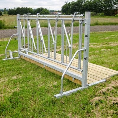 The model comes with either 4 or 5-animals trap gates. For Dairy cattle and calves, we recommend a 5-animals trap gate, and 4-animals trap gate for beef cattle. Both 4 and 5-animals trap gates come with an adjustable per animal.
