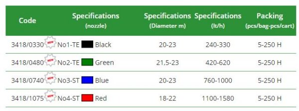Spinkler ½″ with 1 nozzle. Adjustable arc & radius. Working pressure 1,5 – 3,0 Atm.