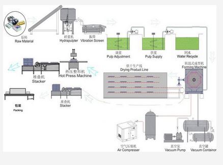 The pulp making system of the apple tray production line is equipped with high-concentration hydrapulper, high-frequency vibrating screen, adjustable refiner and other professional pulp manufacturing equipment to ensure the quality of pulp is good enough to produce high-quality apple trays.
