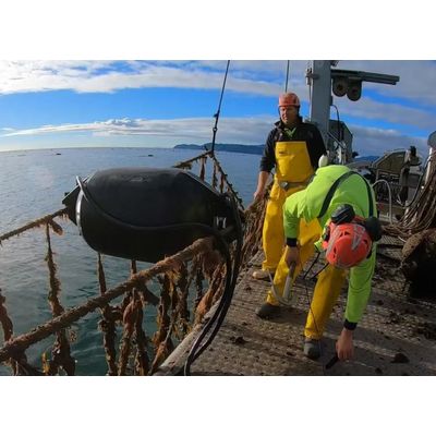 Breakthrough technology in terms of operational cost reductions, environmental sustainability and allowance of farming inclement offshore open waters. The shock-absorbing connection system allows fast installation. It also prevents the contact between the backbone rope and the floats resulting in increased rope life and elimination of lashings. The heavy-duty attachment points permit farming in extreme weather conditions without floats detaching or lashing/locking-pins breaking. Very versatile, the system can be used in conventional surface or sub-surface long line farming. For sub-surface applications, floats are designed with built-in quick connection receptacles for long life elastic cords. These elastic cords can be used to connect surface and sub-surface floats (Elastic Droppers) dampening the energy allowing farming in more extreme conditions and mitigating the “drop off” losses of product.