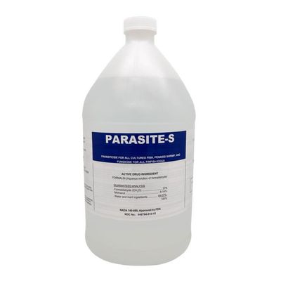Parasite-S is an approved parasiticide for the control of external parasites on all finfish and penaeid shrimp, and for the control of fungus on all finfish eggs and all freshwater-reared finfish. . New users are encouraged to seek advice from a fish health professional prior to using this product. Refer to the “Directions for Use”, and “SDS” links for details prior to treating fish of any life stage. To monitor dosage rate or calculate effluent check out the Formaldehyde test Kits.