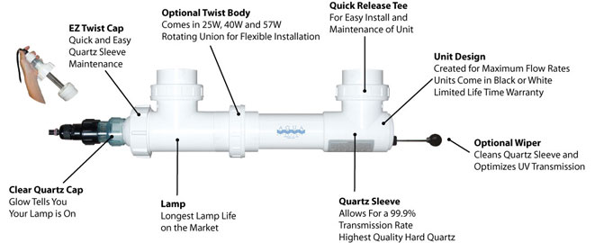 The Classic Series UV’s are ideal for ponds, aquariums, and water features. The Classic’s rugged design has features that allow for quick installation and easy maintenance. Aqua Ultraviolet UV’s will clear your water in 3 to 5 days sometimes overnight and keep it that way. Performance is guaranteed when sized, installed and operated according to our instructions.