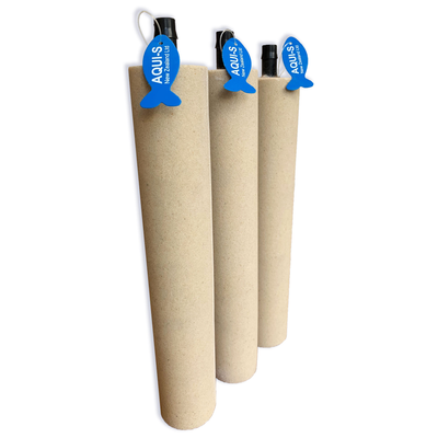 AQUI-S® Air Stones are designed to operate with low pressure air pumps and blowers. They produce medium size bubbles that are optimal for gas absorption by the water but do not irritate the gills of the fish, as can occur with fine bubble oxygen diffusers. The silica material is proven to be sturdy, durable and allows for easy cleaning and low maintenance.