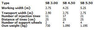Slootsmid arable slurry injectors have a robust construction in combination with a relatively low own weight. The frames are fully galvanised, which offers good protection against the heavy circumstances under which the slurry injectors are often used. Two or four support wheels that can be adjusted in heigt ensure the correct working depth. The farmland slurry injector SB Eco is provided with Slootsmid 4-point attachment.