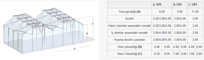 These greenhouses can be constructed in 6 mt, 8 mt and 9 mt tunnel widths.Steel parts of the building can be strengthened according to the climate of the region.