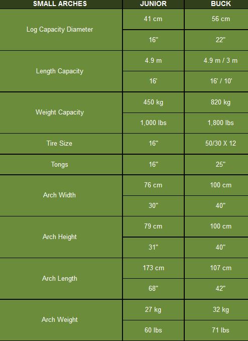 There are two small log arches available: the JUNIOR Arch and the BUCK Arch.