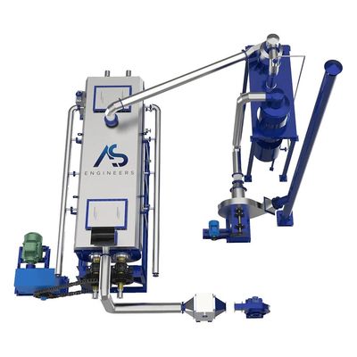 AS Engineers’ Paddle roaster/cooler lies at the heart of the process. The Paddle Dryer has a heated or cooled trough that contains heated or cooled paddle shafts which are allowed to rotate. The product inside the dryer bed comes in total contact with the walls of the shafts, trough, and the paddles, thereby heating or cooling the product evenly. The feed is pushed continuously into the front of the machine. The trough leans towards the unloading position slightly being oriented at a low angle of inclination. This makes the product move towards the outlet via gravity. The paddles inside the Paddle Dryer are designed for maximum heat transfer even when they do not have any transport function. The product exits from the machine via the overflow unit on the outlet side.