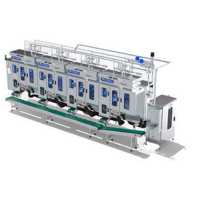 The metering device and the tubing are sterilized by hot water (>121°C). The integrated air sterilizer equipment maintains the aseptic conditions in the sterile chamber and the packaging film tube. The packaging film is sterilized with H2O2 and with powerful UV radiation.