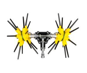 The olive harvester Asteras CF 4x4 is a machine with 2 heads and 32 carbon fiber sticks. The unique layout of carbon fiber along with the wide range balanced pulse motion, achieves maximum performance without the slightest damage on the tree.