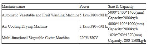 Fruit and vegetable washing line is consisted of Bubble Type Washing Machine and Multi-functional Double Frequency Conversion Vegetable Cutter Machine.