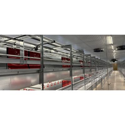 The SiMPLEX aviary system is engineered to enhance poultry management by offering a highly efficient setup for laying hens and breeding stock. A central feature is its centrally located egg collection belt which simplifies the process of collecting clean eggs, eliminating the need for manual system egg collection. Its construction is designed to allow easy access for maintenance, ensuring satisfaction at both the farmer and livestock levels. The system supports automated operation through the TOUCH barn computer, which facilitates remote management and alerts via SMS or phone, ensuring operational integrity. Technical specifications include a system width of up to 3000 mm for stationary barns and 1500 mm for mobile variants, with a clear and organized layout to improve food and water availability directly in front of the nests. This optimizes the conditions for egg production and animal well-being while providing convenient monitoring through its low height, enhancing day-to-day barn operations.
