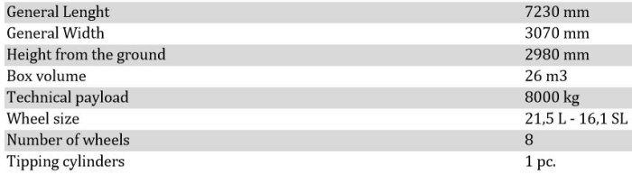 Back tipping. Removable top extensions of box. Suitable for working on peatfields.