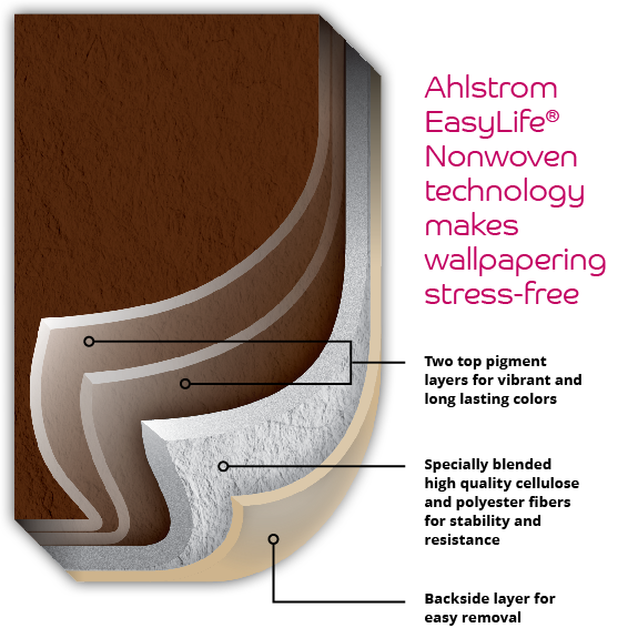 The two top pigment layers of EasyLife make wallpaper surfaces smoother and prevent ink migration. This delivers high printing sharpness and helps your new decoration to remain as colorful and amazing as it was when first installed.