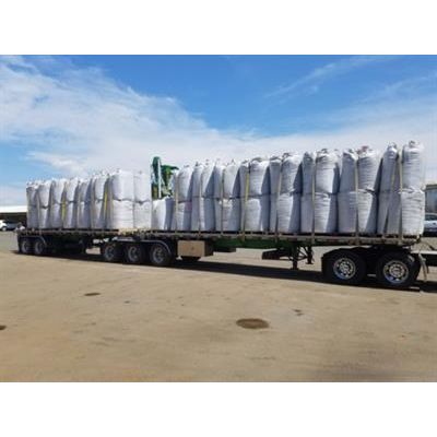 Trailer or flatbed with 50 super sacks (larger load pictured above). For customers who do not have a large-capacity on-site storage, super sacks are a popular option. Your biochar will be protected from the elements, and you can rest easy that your investment will not lose efficacy - our raw product`s shelf life is virtually unlimited.