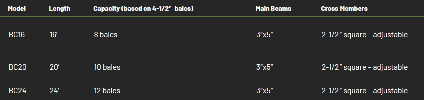 Round bale wagons up to 24’ long for hauling large round and square bales. One load. Unload. Two loads. Unload. Three loads. Unload…We all know how boring hauling hay can be. That’s why we’re always looking for the fastest way to get it done (especially if there’s rain on the way)! When we’re trying to get hay bales off the field in a hurry, we want two things from our bale carriers: haul as many bales as safely possible and don’t break in the middle of the job.