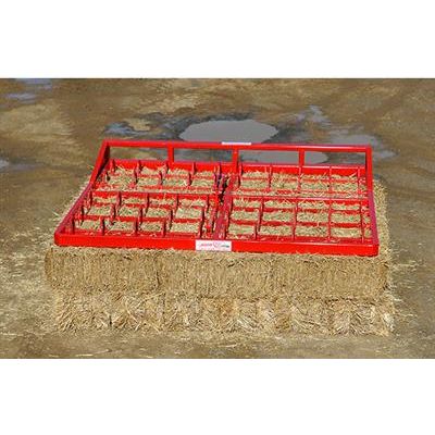 The 15 Bale Grab is built using a robust, heavy duty frame. There are 40 high strength tines for maximum bale coverage. The side guide arm simply locks into position for paddock work via the use of two snap pins, or can simply be removed or locked in the “up” position for shed or warehouse use. The Tenpack 15 Bale Grab is sold without any loader attachments on it. This means that the purchaser can custom fit the grab to a loader, tele-handler or tractor to suit their application. We call this a bare grab.