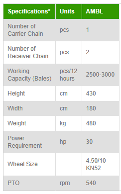 Agrimeiin Bale Loader is designed for picking the bales prepared and left on land by bale machines and loading them lo directly lo trailer. It is mounted to the tractor via trailer-pulling-system to transfers the bales through holding chains, carrier chain transfers the bale to the farthest point of the trailer The height of the machine can be adjusted as desired via the built in hydraulic system. This feature brings about great ease in stacking It positions itself based on job or road conditions It has a single gearbox and operates at 540 rpm. Daily loading capacity between 2500 to 3000 bales.