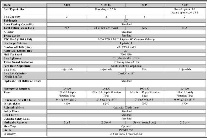 - Bale Capacity: 6 x 6.5′ (2m) rounds
