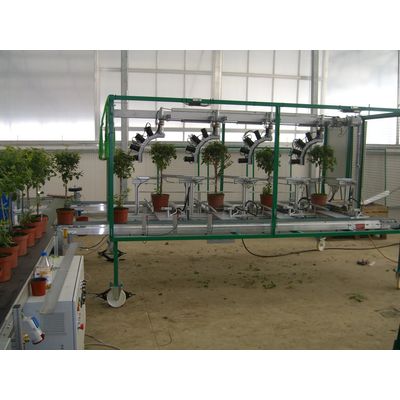 Very fast trimming machine for buffer belt systems suitable for trunks or bushesUp to 3000 plants per hour (depending on the diameter of the plant).The diameter of the cutting can be easily and quickly adjusted.