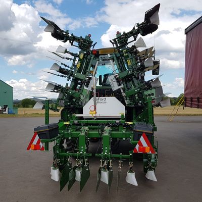 Garford also offer the option to work hooded spraying and band spraying as one unit having twin line systems being fed from two tanks one on the front of the tractor the other on the back. This allows for ultimate spraying efficiency due to the ability to provide total weed control between the rows and foliar coverage over the row. Therefore reducing chemical usage, cost and environmental risks are reduced.