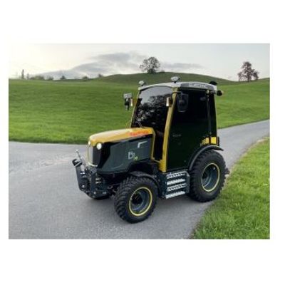 Performance highlights: full electric drive - no idling loss, maneuverability, compact dimensions, low noice level, hill start assist, brake energy recovery, four wheel drive, zero emission, versatile, suspended cabin, front and rear pto are controlled by two dedicated electric motors, total of 5 electric motors generate up to 80 kw, runtime 4 - 6 hours, charging time < 3 hours (85%).