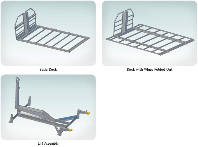 BCA Industries worked with Slicklift to improve their hydraulic loading system. There old systems had a different lift and deck for every application. If you wanted to load snowmobiles above the rails of the truck you needed a special deck, heavy applications inside the bed required a completely different system. All in all Slicklift had over five different combinations of lifts and decks which were no always compatible with each other ... making sales and manufacturing a nightmare.