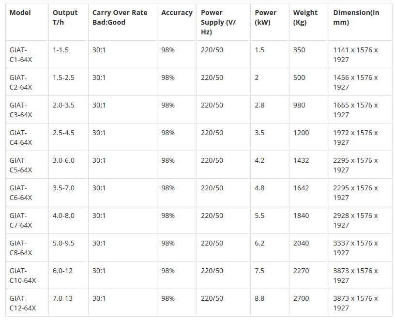 - High sorting accuracy, high efficiency, easy operation, compact structure and elegant appearance, mainly used in the field of cereals sorting. Moreintelligent grain color sorting machineto choose.