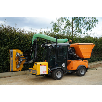 The Becx Machines hedge trimmer HS131C is a further development of the HS131HR. Due to changes in the casing and the blade, it is now possible to collect the trimmed waste in an extraction container.
