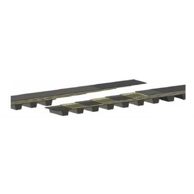 For reverse drive systems or ‘S’ drives and their end rollers double-pivot belt connectors are required: A metal (pitch related) extension piece is fitted between two female joining clips, using two joining rods, to offer a flexible and smooth running of the double pivot joint over drive elements. This metal link can also be used as a length extension repair piece, if the joining clip of one traction belting tears out.