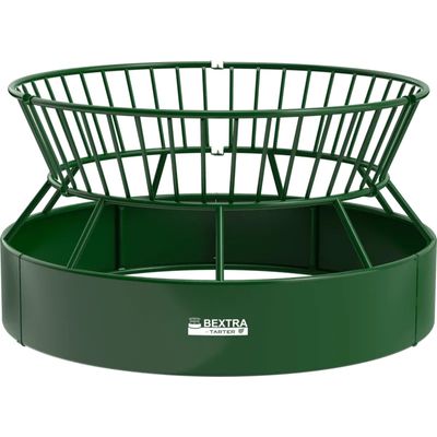 Tarter teamed up with Bextra to create this high-quality bale feeder. Researchers discovered Bextra’s modified cone feeder design increased hay savings by preventing cattle from eating off the top and throwing it to the ground. This feeder centers the hay bale, so cattle eat inside the ring. A solid sheeted hay saver prevents cattle from tossing hay outside the feeder. Saving hay saves you money. This feeder is coated with a corrosion-resistant finish and includes the nuts and bolts needed for assembly. Not recommended for horses or horned cattle.