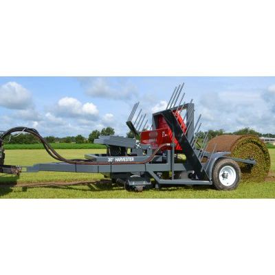 The RL Series Big Roll Sod Harvesters are the safest, most affordable ground driven roll harvester produced. This "pull behind" Big Roll harvester has proven itself as a precision cutting machine, with a floating cutter head and rear control panel.