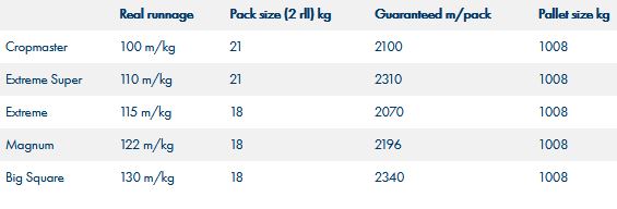 The product specification indicates the actual running meters, not only nominal dimensions. This ensures that a farmer can choose the correct twine for the prevailing baling conditions. Piippo twine runs even up to 25% more meters in kilo compared to standard twine types on the market, offering great saving for the users.
