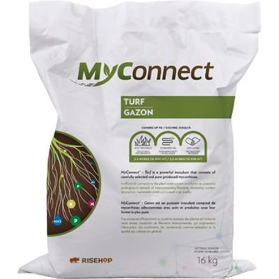 MyConnect – Turf is a powerful bio-fertilizer specifically designed for turf professionals which blends seamlessly in your day-to-day operations, with proven effectiveness. It consists of highly concentrated, carefully selected and pure-produced mycorrhiza. It efficiently connects to the grass-roots system and forms an extensive underground network of interconnecting filaments, increasing nutrient absorption, turf appearance and transplant success, stress resistance (drought). It increases operational profits, while reducing costs linked to start-up fertilizers. All its benefits are transferable to the end-users. Contains 4,000 viable spores/g of the endomycorrhizal species Rhizoglomus sp.