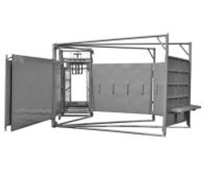 Chutes are equipped with a Horizontal Roll Gate at the back of the chute. The Horizontal Roll Gate has been designed to open and close with one hand using the Gravity Latch.