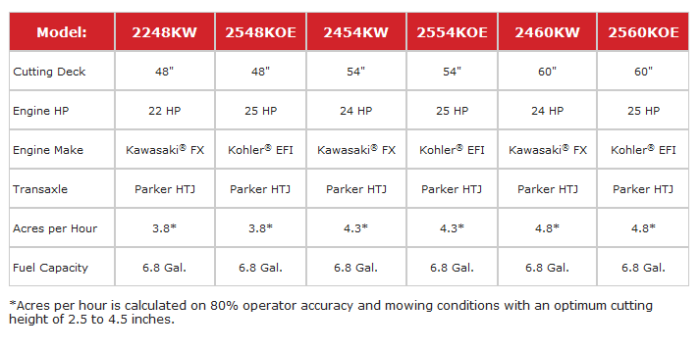 - Proven Power – Equipped with the industry preferred Kawasaki® FX and Kohler® EFI engines for trusted reliability and performance.