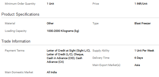 - Usage/Application Blast Freezing, Rapid Chilling