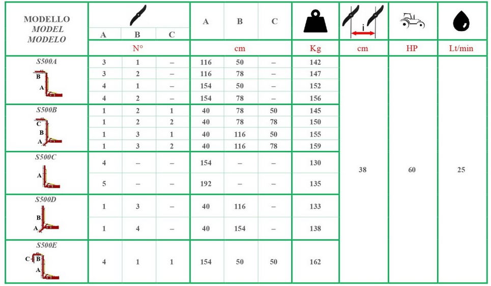 - Hardened steel blades ensure top quality trimming with high cutting speeds (2000/2500 rev./min) even when the tractor moves fast along- The special belt drive used does not require any idler.
