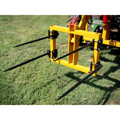 Our spring steel forged hay spears are the strongest and most durable forks on the market. You can bolt them to tubing ranging from 2x4 to 7x4. We offer three fork sizes: BOFS-43 rated at 3500lbs, BOFS-42 rated 3200lbs and the BOFS-36 rated 1800lbs. All bolt on forks include bracket and bolts. Priced per fork.