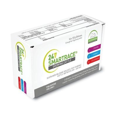 24·7 SMARTRACE® GROWING CATTLE boluses are packed in units of 10 (enough for 10 cattle).