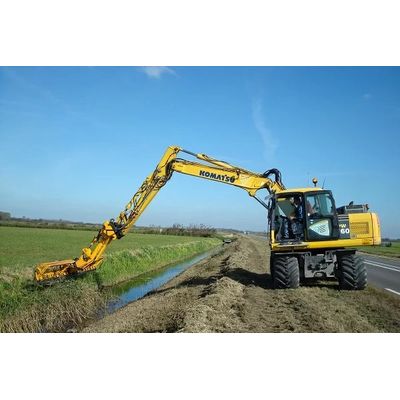 Herder can also provide appropriate boom sets (mowing bucket booms) for special excavators like Mecalac and Gallmac machines. The first part of the original boom is not replaced for these excavators. That part is expanded with 2 ‘mowing bucket booms’.