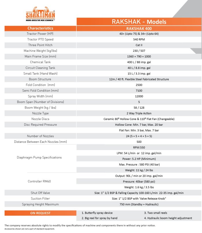 Shaktiman Rakshak - Model 400 -Boom Sprayer