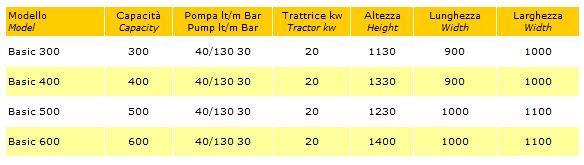 Polyethylene tank, level capacity tank with floating light, hand-washing tank, tank drain valve, suction filter with automatic shut-off valve, galvanized frame, hydro-pneumatic mixer, pump medium / low pressure, mechanical control group.